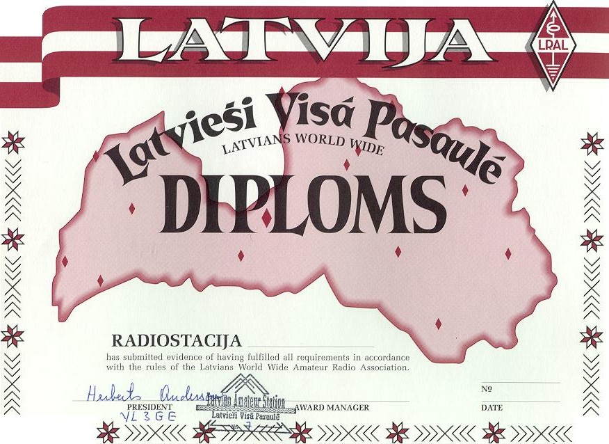 Lai iegūtu DIPLOMU savā kolekcijā, jāsastrādā 21 QSO ar ''YL'' Prefiksa