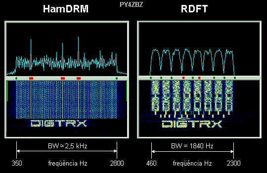 Un visbeidzot, uzdāvinot sev savā dzimšanas dienā pēdējā brīdī vēl lēti nopērkamu datoru, kas ir jaudīgs diezgan lai darbinātu jebko, ko Hamradio izmanto, es varēju praktiski pamēģināt, ieinstalēt un t.t. Un nonācu pie PY4ZBZ programmas DIGTRX. http://paginas.terra.com.br/lazer/py4zbz/hdsstv/HamDRM.htm Tās versija 3.11 no 17.05.2005. uztur abus divus veidus gan HamDRM, gan RDFT.