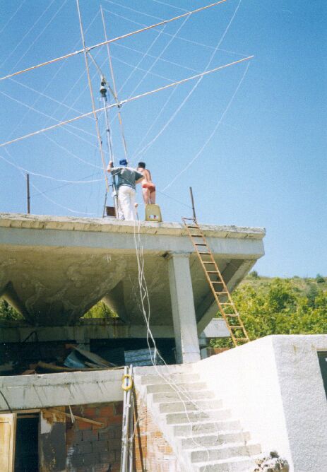 Antennas, antennas. Yes, many are needed, and they are indispensable. We mounted sloper dipoles for 160, 80 and 40
