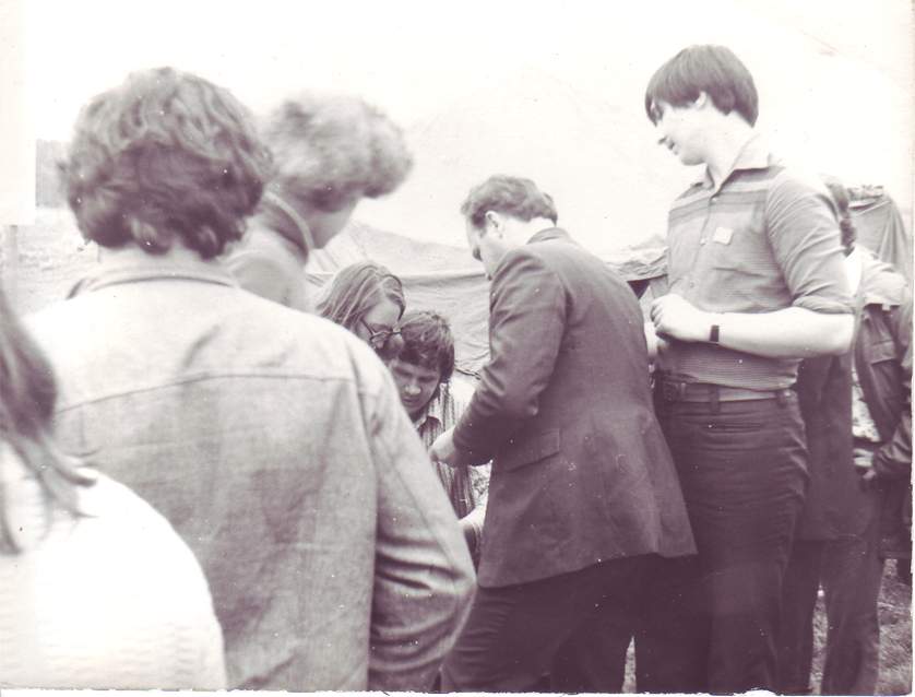Tas raidītājs , jauneklim džemperī , aiz muguras karājas