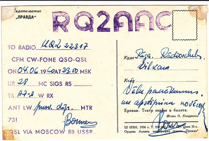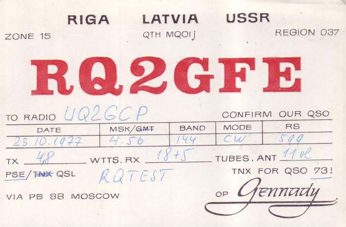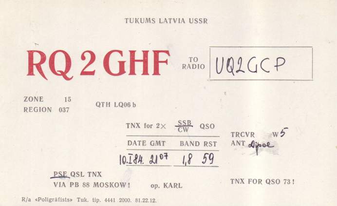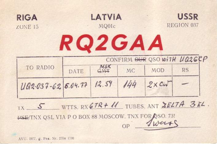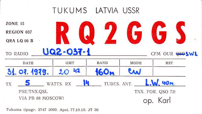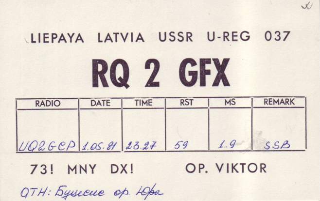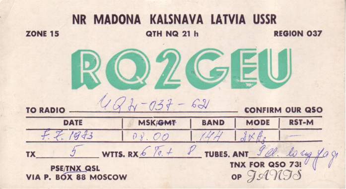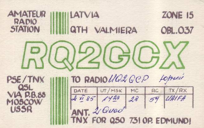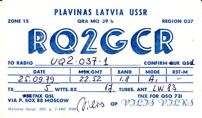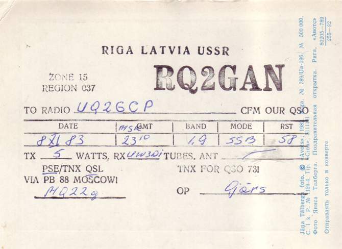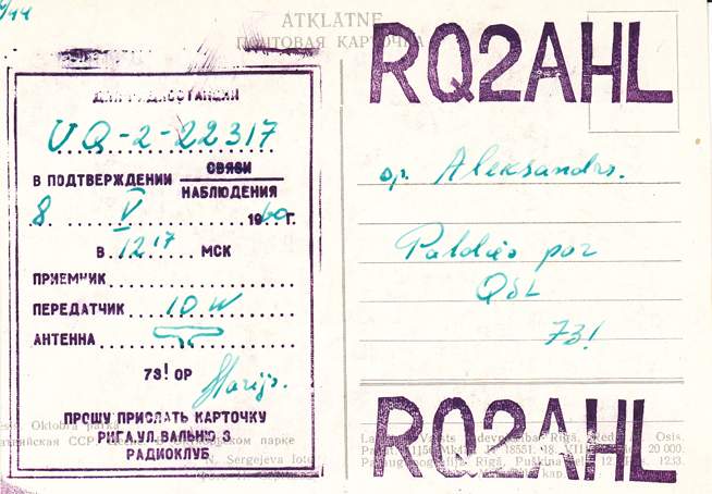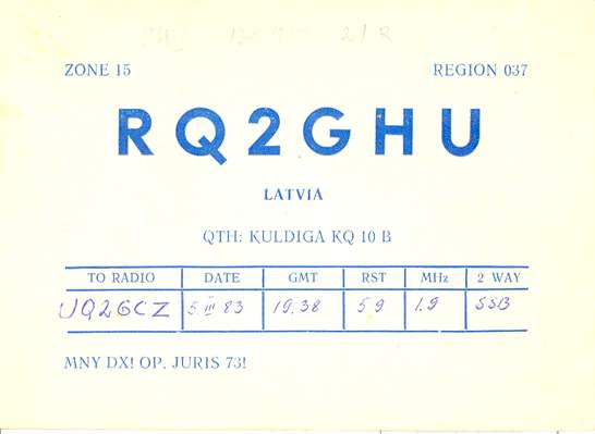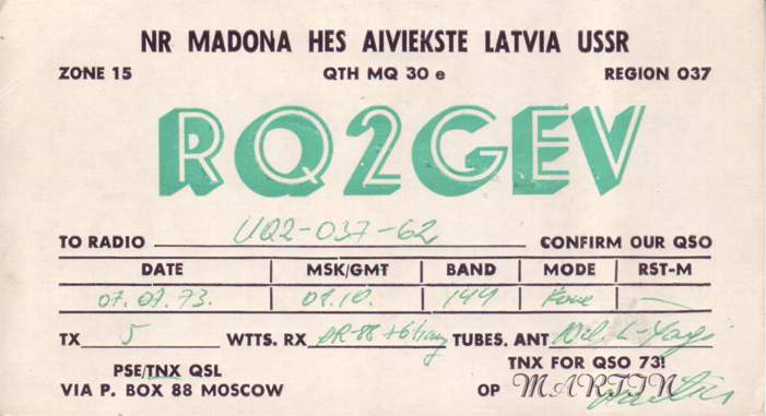Radiostaciju QSL , kas sākās ar RQ2