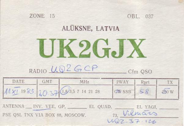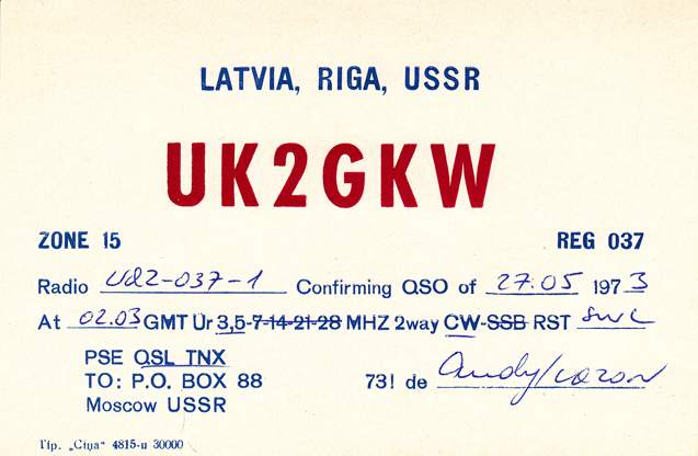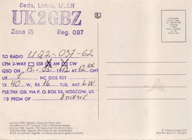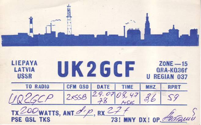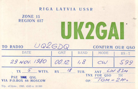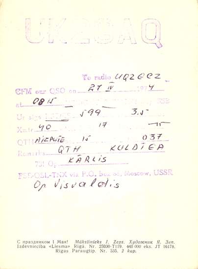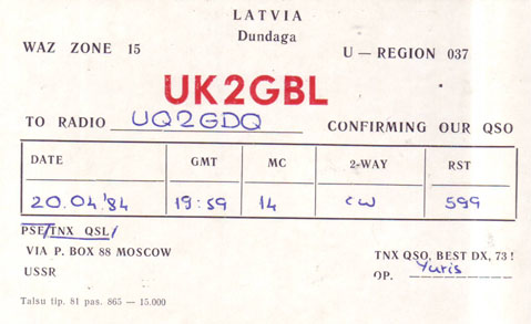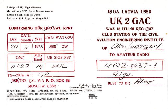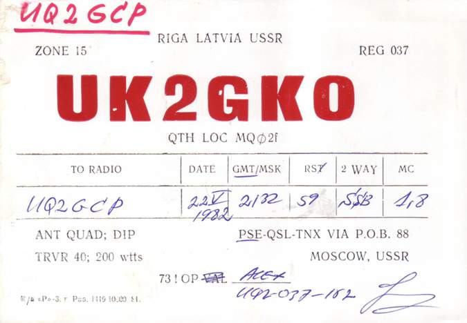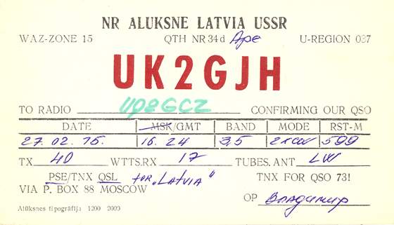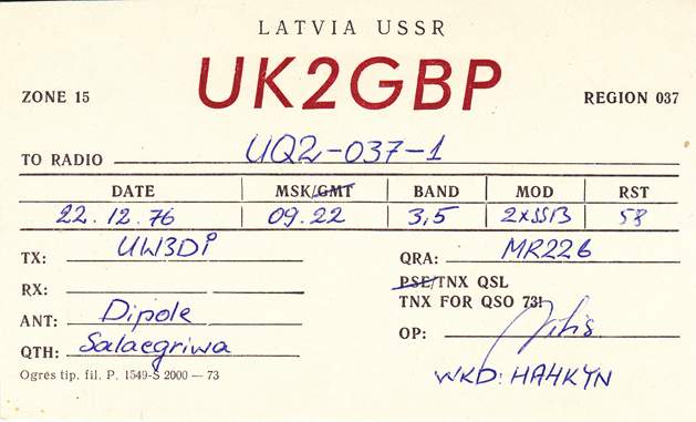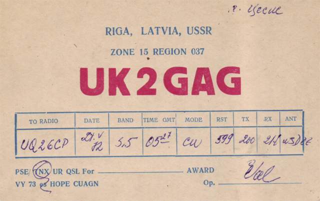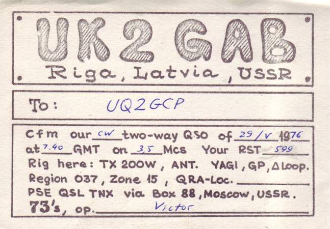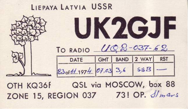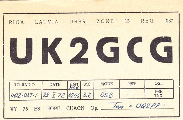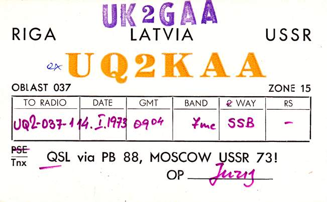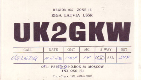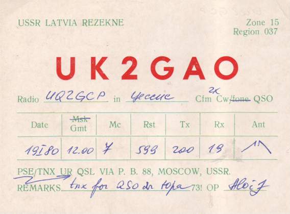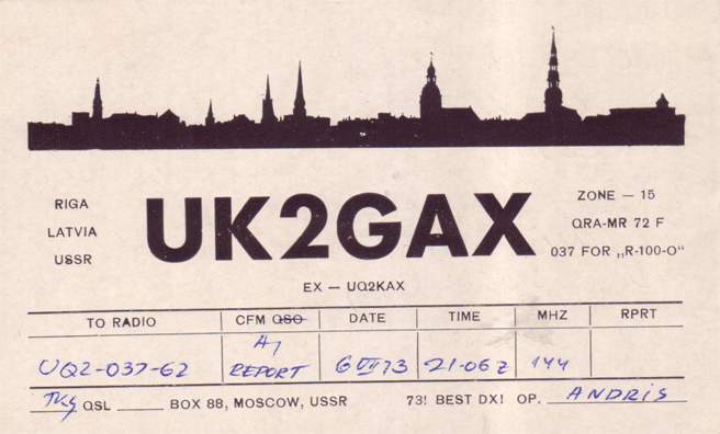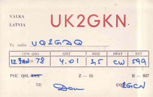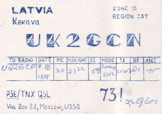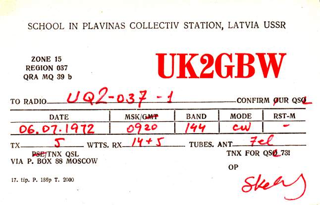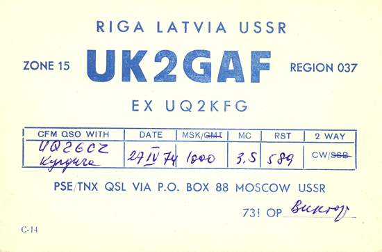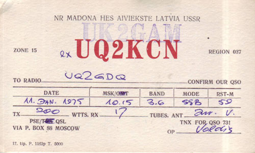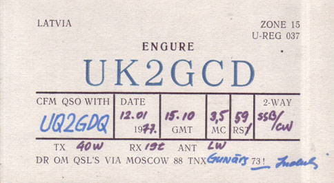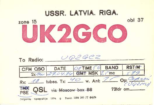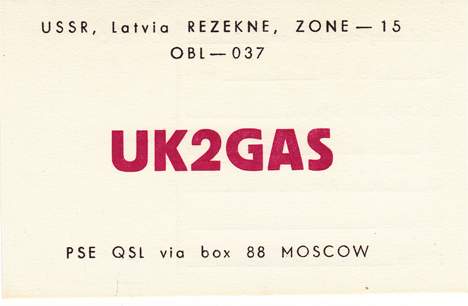 Kolektīvo staciju QSL , kas sākās ar UK2G