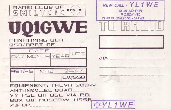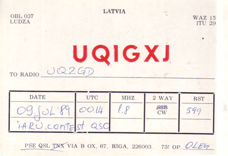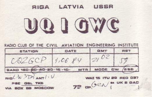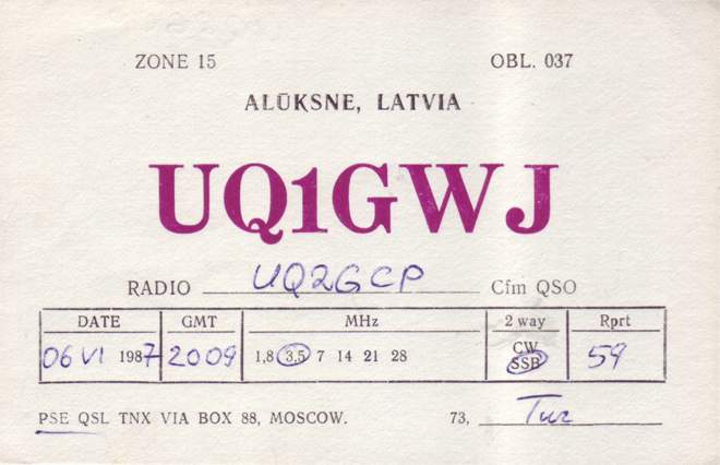 Kolektīvo staciju QSL , kas sākās ar UQ1G