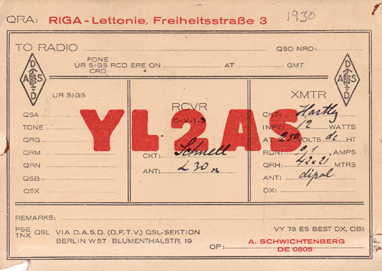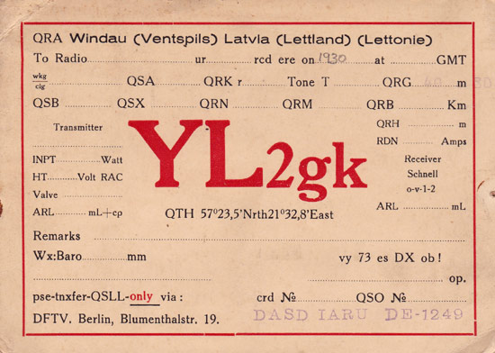 Pirmskara Latvijas radioamatieru QSL-kartiņas un daži piedāvātie kartiņu paraugi tipogrāfijai