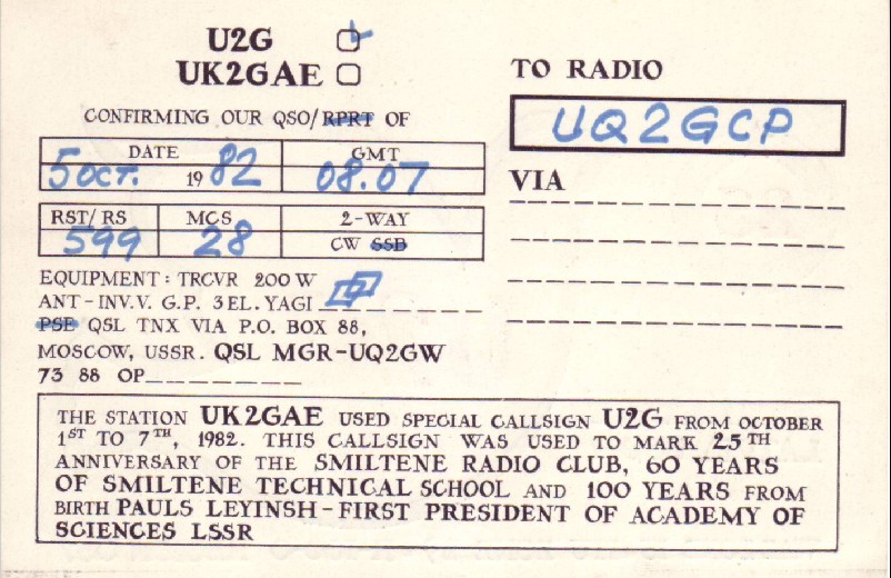 No šīs QSL var secināt , ka U2G ir darbojusies