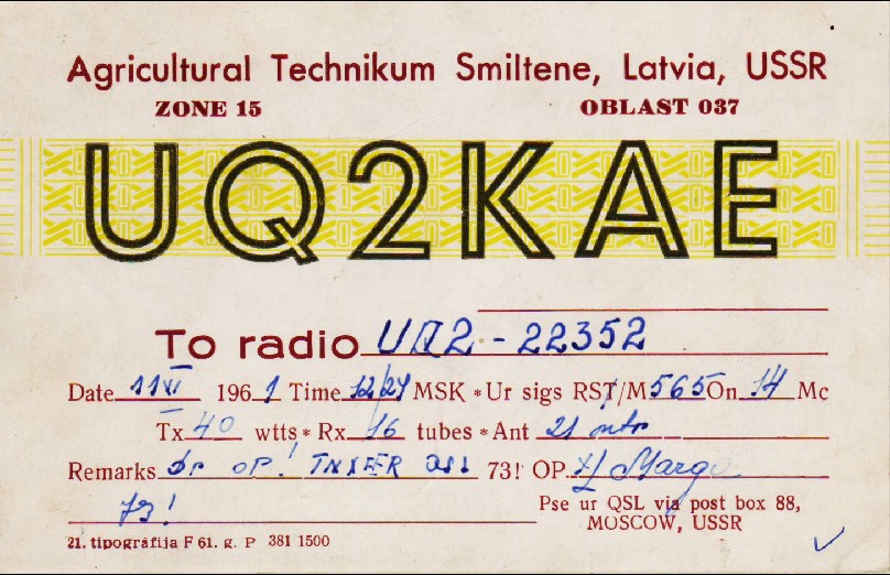 Šāda QSL bija 1965.gada martā |