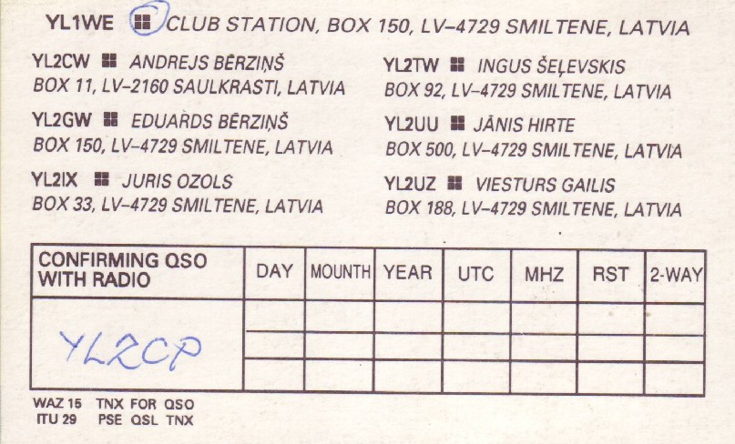Ingus Šeļevskis , UQ2GTW , YL2TW , YL85TW , ES6TW , YL9T |