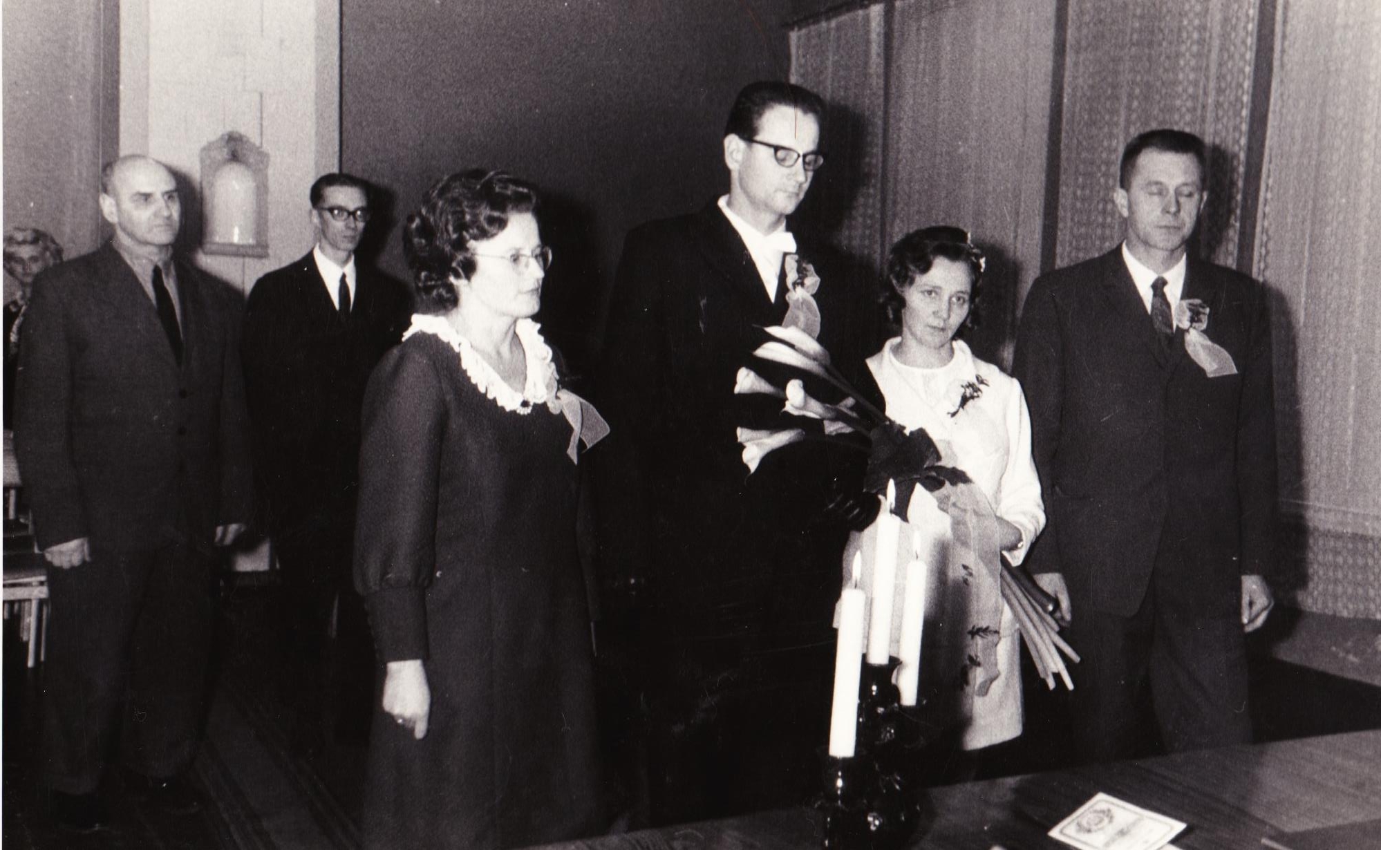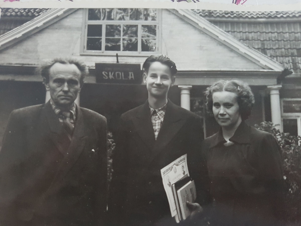 Jāņa tēvs , no viņa pa labi Jāņa māsica Vija /gaišā kleitā/