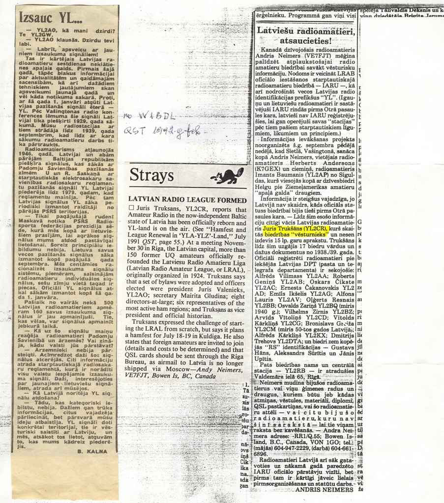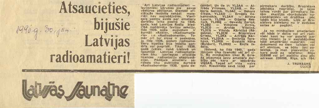 Arī laikrakstā tika atzīmēts mūsu radioamatieru sasniegums