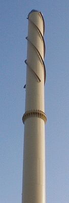 Одним из активных способов уменьшения вибрации длинных труб круглого сечения является применение так называемых интерцепторов - небольших многозаходных спиральных выступов, покрывающих 1/3 - 1/4 свободного конца трубы. Обычно делают трех- четырехзаходные спирали с высотой ребер 0,1 диаметра трубы и с шагом 5-10 диаметров трубы. Такие устройства можно увидеть на дымовых трубах современных котельных. Ребра могут быть и не сплошными, а если нужно, чтобы они не влияли на электрические параметры излучателя, то можно их изготовить из диэлектрика.