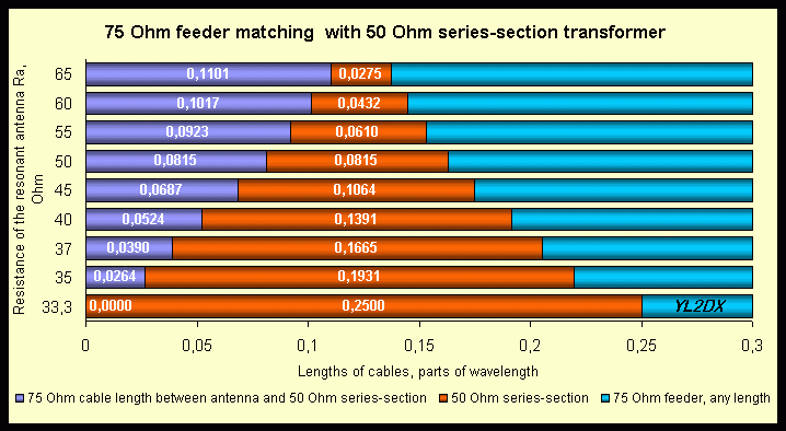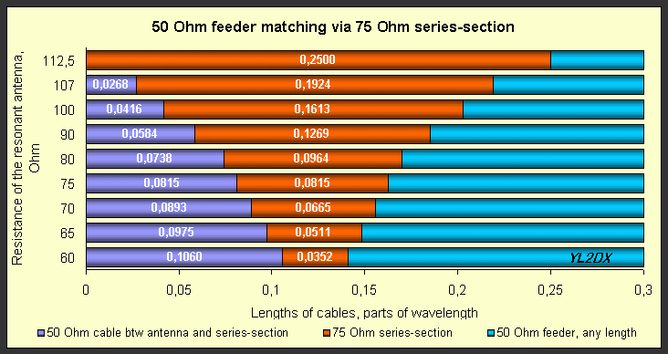 График 1: фидер 75 Ом, согласующая секция 50 Ом;