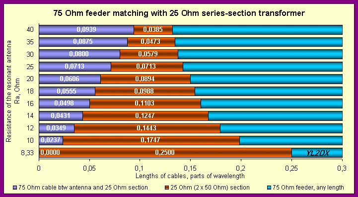 График 3: фидер 75 Ом, согласующая секция 25 Ом;