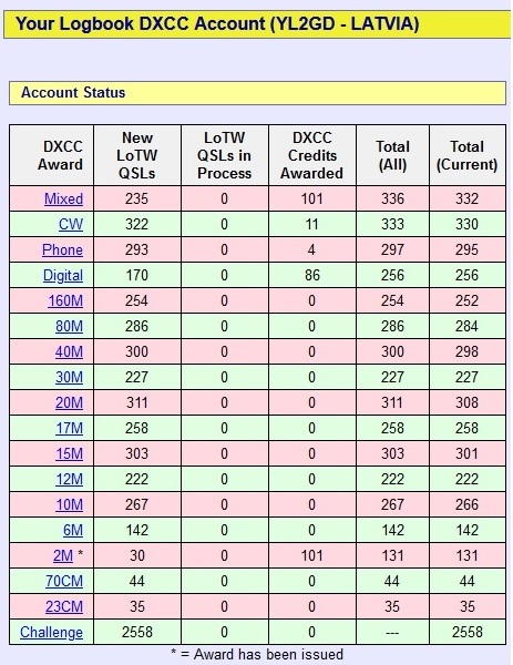 and LoTW confirmed DXCC Challenge-2500, DXCC on 11 bands.