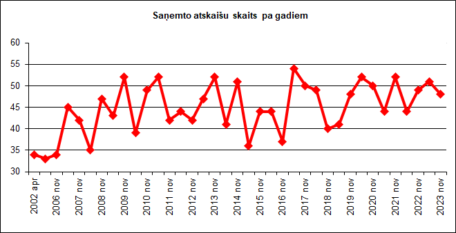 Sarkanā krāsā trekn drukā (bold) ir izsaukuma signāli dalībniekiem, kam pienākas