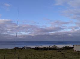 Yuris got in touch late evening to say that today around lunch time he finally got on the island (article on the island's webpage about MFV Lance arrival). All went without accidents. He has managed to install the EFHW and DX-Commander antennas already and made about 200 QSOs so far. Internet is available in the village, not directly in the place of his stay.