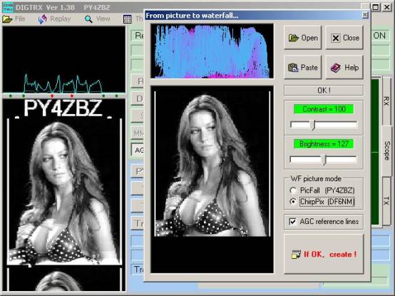 Waterfall jeb ūdenskritumu var izmantot lai noraidītu piemēram CQ, vai QSL, vai SEND AGAIN un tamlīdzīgi. Var pat pārraidīt bildītes :