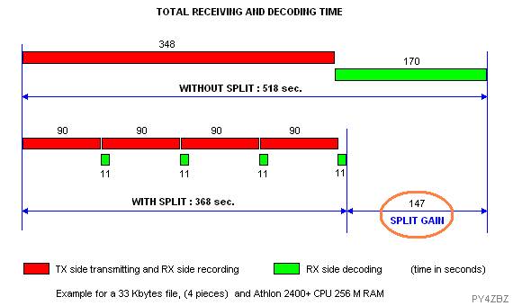 Grafisko failu var pārraidīt vienā gabalā vai pa daļām, segmentos, un programma to samontēs kopā. Attēls ar ciešamu kvalitāti varētu būt 320X256 liels. Vēlams katru failu veidot ap 60 s garu, var protams lielāku bet tad QSO manuprāt pārvēršas par pārāk ilgstošu pasākumu. Pārraides un dekodēšanas laiks ir diezgan ievērojams, ko var redzēt zemāk attēlotajā grafikā.