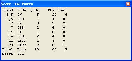 Protams, nav reālā laikā bet var redzēt atsevišķas tūres pēc diapazoniem un reizinātājus un punktus saskaitīt izmantojot kalkulatoru. Diemžēl punktu skaitīšana un gala rezultāta iegūšana nav automatizēta bet ir iespēja dabūt hronoloģisku logu visām modulācijām, cabrillo logu un, izmantojot ADIF, pārdzīt informāciju uz citu QSO reģistrācijas programmu.