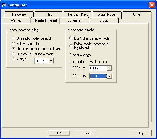 2. Latvijas testā ir vairākas tūres ar caurejošu QSO kārtas numuru. Tādēļ ir jāizvēlas a) vai nu ir frekvences kontrole (CAT) un ir pareizas frekvences logā, to nav jārediģē bet nav otrajā un nākošajās tūrēs informācija par atkātotiem sakariem b) vai nu katrā tūrē lietot citu diapazonu un nav CAT bet ir informācija par atkātotiem QSO. Liekas ka versija ar diapazonu maiņu dod lielākas priekšrocības. Vispirms neparādās tas brīdinošais uzraksts DUPE, kas var samulsināt, un otrkārt ir informācija par reizinātājiem katrā tūrē. Zem izvēles Configurer -> Mode Control izvēlas Use contest or bandplan un Dont change radio mode. Ko tas dod?